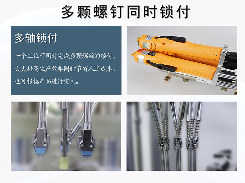 該鎖付系統可等同為全自動鎖螺絲流水線,通過四個工作站的作業,將百葉窗扇葉通過螺絲緊固在框架內的指定位置,螺絲采用自主研發吹氣式自動送釘機,直接輸送至鎖付機構;扇葉通過專用治具與框架定位,需手動放置;鎖付系統采用水平雙方向同時作業,配置4把電批位于兩側,一次擰好4顆螺絲;移動式作業臺根據程序設定,逐點向前推進并自動擰螺絲。