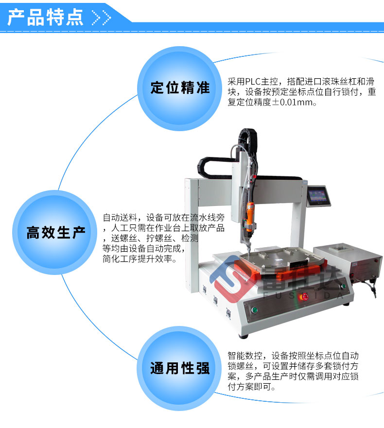 深圳市富仕達自動化設備有限公司是國內領先的以自動鎖螺絲設備為核心的自動化設備制造商,堅持以客戶需求為中心,定制自動化鎖螺絲方案,已有超過4000家企業采用富仕達定制的自動鎖螺絲設備實現“機器換人”,節省大量人力成本。